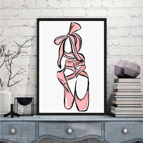 Quadro ilustração sapatilha de ballet 33x24cm - com vidro Moldura: madeira preta Informações do produto Decoração para quarto, sala, cozinha, escritório, área gourmet e muito mais. Chega de paredes vazias medidas - cada peça tem 33x24cm a4 . Material do papel - papel fotográfico brilhante de altíssima resolução Acabamento - todos os quadros são acompanhados de vidro para proteção da imagem. - Moldura em madeira maciça na cor preta e pendurador . - Os quadros são embalados de forma segura com plástico bolha com camada dupla de acordo com o tamanho dos quadros. - de 3 meses. Meu quadro chegou. Como posso fixá-lo Você precisa apenas de um martelo e um prego, pois os quadros já vão acompanhados de penduradores. Esta é a forma mais indicada. Como posso limpar meu quadro A limpeza é feita como um móvel comum da sua casa. Apenas um pano seco ou espanador são suficientes para tal Ean: 7895142208581