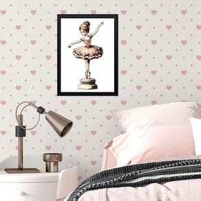 Quadro infantil bailarina caixinha de música 45x34cm - com vidro Moldura: madeira branca Informações do produto tire todas as suas dúvidas no descritivo abaixo: decoração para quarto, sala, cozinha, escritório, área gourmet e muito mais. Chega de paredes vazias medidas - cada peça tem 45x34cm a3 . Material do papel - papel fotográfico brilhante de altíssima resolução acabamento - todos os quadros são acompanhados de vidro para proteção da imagem. - moldura em madeira maciça na cor preta ou branca conforme produto escolhido e pendurador . - os quadros são embalados de forma segura com plástico bolha com camada dupla de acordo com o tamanho dos quadros. Garantia - garantia de 3 meses. Meu quadro chegou. Como posso fixá-lo Você precisa apenas de um martelo e um prego, pois os quadros já vão acompanhados de penduradores. Esta é a forma mais indicada. Como posso limpar meu quadro A limpeza é feita como um móvel comum da sua casa. Apenas um pano seco ou espanador são suficientes para tal