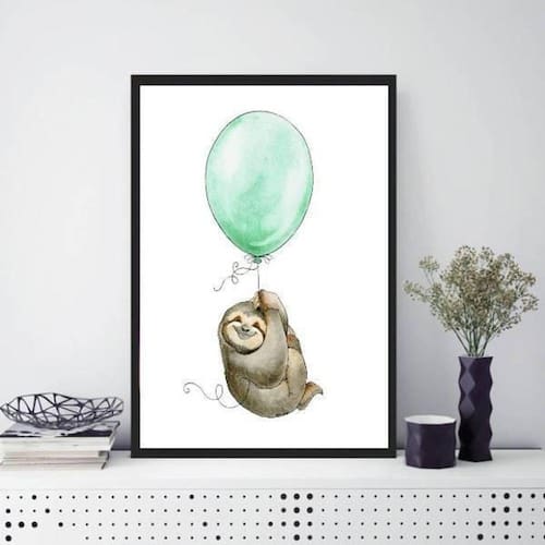 Quadro infantil bicho preguiça com balão 33x24cm Moldura: madeira preta Informações do produto tire todas as suas dúvidas no descritivo abaixo: decoração para quarto, sala, cozinha, escritório, área gourmet e muito mais. Chega de paredes vazias medidas - cada peça tem 33x24cm (a4). Material do papel - papel fotográfico brilhante de altíssima resolução acabamento - todos os quadros são acompanhados de uma película de acetato para proteção da imagem. - moldura em madeira maciça na cor preta e pendurador móvel que pode ser retirado facilmente caso deseje fixar com fita dupla face. - os quadros são embalados de forma segura com plástico bolha com camada dupla de acordo com o tamanho dos quadros.
