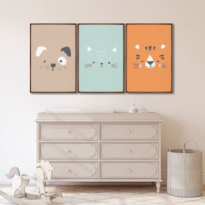 Quadro Infantil Decorativo Rostinhos do Bem Gato Cachorro Tigre com 3 Telas cm de Parede para Sala, Quarto de Criança, Quarto de Bebê, Brinquedoteca, Escola, Creche, Sala de Jogos, Hall, Salão de Festas, Berçário, Maternidade.?Especificações Técnicas:Modelo: Rostinhos do Bem;Medidas: cm;Material da Imagem: Papel premium fotográfico de alta qualidade;Material da Moldura: Madeira de reflorestamento revestida;Espessura da Moldura: 2,7cm de profundidade e 1,5cm frontal;Acabamento: Fita Kraft;Acompanha: Suporte de serrilha para quadros e parafusos.Transforme o espaço de sua criança com criatividade! Não perca a oportunidade de adquirir o exclusivo Quadro Decorativo Rostinhos do Bem com 3 Telas a um preço incrível! Acompanha Fixação para Parede: Sim Ambiente Principal: Sala de Estar Cor: Marrom Cor do Produto: Marrom Espessura: 20 mm Itens Inclusos: Quadro com 3 telas Marca: ARTE PRÓPRIA Material Principal: Madeira Maciça Medida de Cada Item: 60cm x 90cm Origem do Produto: Nacional Peso: 15 kg Possui Paspatur: Não Possui Vidro: Não Tema da Estampa: Infantil Tipo de Quadro: Kit de quadros Marca: ARTE PRÓPRIA