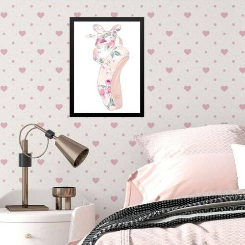 Quadro infantil menina sapatilha de balé 33x24cm - com vidro Moldura: madeira preta Informações do produto tire todas as suas dúvidas no descritivo abaixo: decoração para quarto, sala, cozinha, escritório, área gourmet e muito mais. Chega de paredes vazias medidas - cada peça tem 33x24cm a4 . Material do papel - papel fotográfico brilhante de altíssima resolução acabamento - todos os quadros são acompanhados de vidro para proteção da imagem. - moldura em madeira maciça na cor preta ou branca conforme produto escolhido e pendurador . - os quadros são embalados de forma segura com plástico bolha com camada dupla de acordo com o tamanho dos quadros. Garantia - garantia de 3 meses. Meu quadro chegou. Como posso fixá-lo Você precisa apenas de um martelo e um prego, pois os quadros já vão acompanhados de penduradores. Esta é a forma mais indicada. Como posso limpar meu quadro A limpeza é feita como um móvel comum da sua casa. Apenas um pano seco ou espanador são suficientes para tal