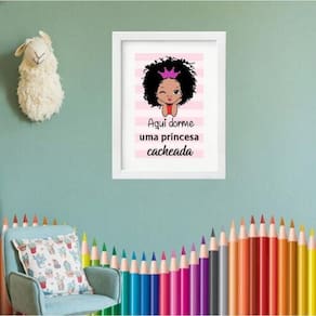 Quadro infantil princesa cacheada - 60x48cm Moldura: madeira preta Informações do produto tire todas as suas dúvidas no descritivo abaixo: decoração para quarto, sala, cozinha, escritório, área gourmet e muito mais. Chega de paredes vazias medidas - cada peça tem 60x48cm . Material do papel - papel fotográfico brilhante de altíssima resolução acabamento - todos os quadros são acompanhados de vidro para proteção da imagem. - moldura em madeira maciça na cor preta ou branca conforme produto escolhido e pendurador. - paspatur branco com 7cm de largura - os quadros são embalados de forma segura com plástico bolha com camada dupla de acordo com o tamanho dos quadros. Garantia - garantia de 3 meses. Meu quadro chegou. Como posso fixá-lo Você precisa apenas de um martelo e um prego, pois os quadros já vão acompanhados de penduradores. Esta é a forma mais indicada. Como posso limpar meu quadro A limpeza é feita como um móvel comum da sua casa. Apenas um pano seco ou espanador são suficientes para tal