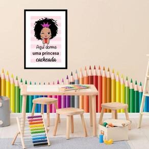Quadro infantil princesa cacheada - 60x48cm Moldura: madeira branca Informações do produto tire todas as suas dúvidas no descritivo abaixo: decoração para quarto, sala, cozinha, escritório, área gourmet e muito mais. Chega de paredes vazias medidas - cada peça tem 60x48cm . Material do papel - papel fotográfico brilhante de altíssima resolução acabamento - todos os quadros são acompanhados de vidro para proteção da imagem. - moldura em madeira maciça na cor preta ou branca conforme produto escolhido e pendurador. - paspatur branco com 7cm de largura - os quadros são embalados de forma segura com plástico bolha com camada dupla de acordo com o tamanho dos quadros. Garantia - garantia de 3 meses. Meu quadro chegou. Como posso fixá-lo Você precisa apenas de um martelo e um prego, pois os quadros já vão acompanhados de penduradores. Esta é a forma mais indicada. Como posso limpar meu quadro A limpeza é feita como um móvel comum da sua casa. Apenas um pano seco ou espanador são suficientes para tal