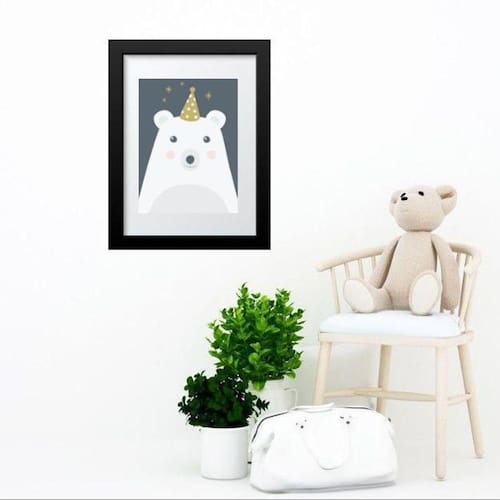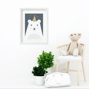 Quadro infantil urso branco e cinza - 60x48cm Moldura: madeira branca Informações do produto tire todas as suas dúvidas no descritivo abaixo: decoração para quarto, sala, cozinha, escritório, área gourmet e muito mais. Chega de paredes vazias medidas - cada peça tem 60x48cm . Material do papel - papel fotográfico brilhante de altíssima resolução acabamento - todos os quadros são acompanhados de vidro para proteção da imagem. - moldura em madeira maciça na cor preta ou branca conforme produto escolhido e pendurador. - paspatur branco com 7cm de largura - os quadros são embalados de forma segura com plástico bolha com camada dupla de acordo com o tamanho dos quadros. Garantia - garantia de 3 meses. Meu quadro chegou. Como posso fixá-lo Você precisa apenas de um martelo e um prego, pois os quadros já vão acompanhados de penduradores. Esta é a forma mais indicada. Como posso limpar meu quadro A limpeza é feita como um móvel comum da sua casa. Apenas um pano seco ou espanador são suficientes para tal
