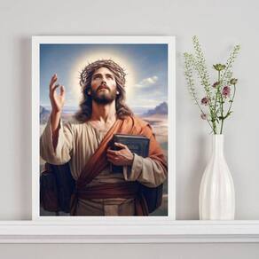 Quadro jesus com bíblia sagrada 24x18cm Moldura: madeira preta Informações do produto tire todas as suas dúvidas no descritivo abaixo: decoração para quarto, sala, cozinha, escritório, área gourmet e muito mais. Chega de paredes vazias medidas - cada peça tem 24x18cm a5 . Material do papel - papel fotográfico brilhante de altíssima resolução acabamento - todos os quadros são acompanhados de uma película de acetato para proteção da imagem. - os quadros são embalados de forma segura com plástico bolha com camada dupla de acordo com o tamanho dos quadros. Garantia - garantia de 3 meses. Meu quadro chegou. Como posso fixá-lo Você precisa apenas de um martelo e um prego, pois os quadros já vão acompanhados de penduradores. Esta é a forma mais indicada. Caso prefira, você pode utilizar uma fita dupla face neste caso, sugerimos de alta qualidade para evitar que descole e seu quadro caia . Como posso limpar meu quadro A limpeza é feita como um móvel comum da sua casa. Apenas um pano seco ou espanador são suficientes para tal