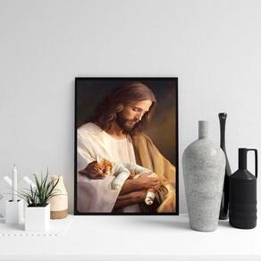 Quadro jesus cuidando de gatinho 45x34cm Moldura: madeira preta Informações do produto tire todas as suas dúvidas no descritivo abaixo: decoração para quarto, sala, cozinha, escritório, área gourmet e muito mais. Chega de paredes vazias. Medidas - cada peça tem 45x34cm a3 . Material do papel - papel fotográfico brilhante de altíssima resolução acabamento - todos os quadros são acompanhados de uma película de acetato para proteção da imagem. - os quadros são embalados de forma segura com plástico bolha com camada dupla de acordo com o tamanho dos quadros. Garantia - garantia de 3 meses. Meu quadro chegou. Como posso fixá-lo Você precisa apenas de um martelo e um prego, pois os quadros já vão acompanhados de penduradores. Esta é a forma mais indicada. Caso prefira, você pode utilizar uma fita dupla face neste caso, sugerimos de alta qualidade para evitar que descole e seu quadro caia . Como posso limpar meu quadro A limpeza é feita como um móvel comum da sua casa. Apenas um pano seco ou espanador são suficientes para tal