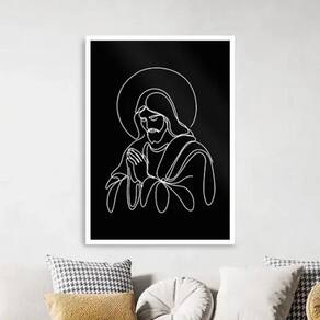 Quadro jesus moderno - one line 33x24cm Cor: moldura preta Informações do produto tire todas as suas dúvidas no descritivo abaixo: decoração para quarto, sala, cozinha, escritório, área gourmet e muito mais. Chega de paredes vazias medidas - cada peça tem 33x24cm a4 . Material do papel - papel fotográfico brilhante de altíssima resolução acabamento - todos os quadros são acompanhados de uma película de acetato para proteção da imagem. - os quadros são embalados de forma segura com plástico bolha com camada dupla de acordo com o tamanho dos quadros. - de 3 meses. Meu quadro chegou. Como posso fixá-lo Você precisa apenas de um martelo e um prego, pois os quadros já vão acompanhados de penduradores. Esta é a forma mais indicada. Caso prefira, você pode utilizar uma fita dupla face neste caso, sugerimos de alta qualidade para evitar que descole e seu quadro caia . Como posso limpar meu quadro A limpeza é feita como um móvel comum da sua casa. Apenas um pano seco ou espanador são suficientes para tal Marca: Não Informado