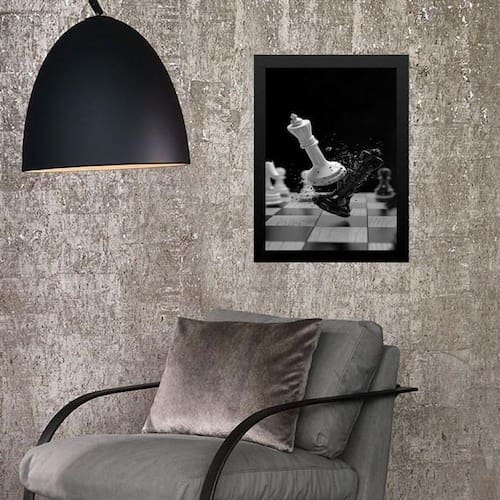 Quadro jogo xadrez-preto e branco 45x34cm - com vidro Moldura: madeira preta Informações do produto tire todas as suas dúvidas no descritivo abaixo: decoração para quarto, sala, cozinha, escritório, área gourmet e muito mais. Chega de paredes vazias medidas - cada peça tem 45x34cm a3 . Material do papel - papel fotográfico brilhante de altíssima resolução acabamento - todos os quadros são acompanhados de vidro para proteção da imagem. - moldura em madeira maciça na cor preta ou branca conforme produto escolhido e pendurador . - os quadros são embalados de forma segura com plástico bolha com camada dupla de acordo com o tamanho dos quadros. Garantia - garantia de 3 meses. Meu quadro chegou. Como posso fixá-lo Você precisa apenas de um martelo e um prego, pois os quadros já vão acompanhados de penduradores. Esta é a forma mais indicada. Como posso limpar meu quadro A limpeza é feita como um móvel comum da sua casa. Apenas um pano seco ou espanador são suficientes para tal Homologação Inmetro: CE-BRI/ICEPEX-N 01264-25-3