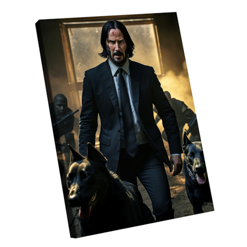 Quadro John Wick Dogs -- BR ARTES Borda Infinita - Médio 84x54 -