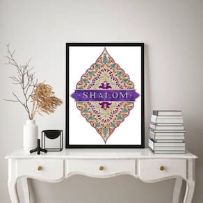 O Quadro Decorativo Judaico Mão Shalom 33X24Cm - Com Vidro é perfeito para quem busca uma decoração elegante e cheia de significado para o ambiente. Com uma moldura de madeira branca, esse quadro traz toda a beleza e simbolismo do judaísmo para a sua casa.