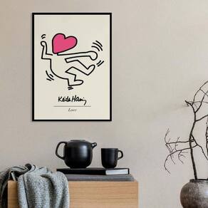 Quadro keith haring - the love 24x18cm Moldura: madeira branca Informações do produto tire todas as suas dúvidas no descritivo abaixo: decoração para quarto, sala, cozinha, escritório, área gourmet e muito mais. Chega de paredes vazias medidas - cada peça tem 24x18cm a5 . Material do papel - papel fotográfico brilhante de altíssima resolução acabamento - todos os quadros são acompanhados de uma película de acetato para proteção da imagem. - os quadros são embalados de forma segura com plástico bolha com camada dupla de acordo com o tamanho dos quadros. Garantia - garantia de 3 meses. Meu quadro chegou. Como posso fixá-lo Você precisa apenas de um martelo e um prego, pois os quadros já vão acompanhados de penduradores. Esta é a forma mais indicada. Caso prefira, você pode utilizar uma fita dupla face neste caso, sugerimos de alta qualidade para evitar que descole e seu quadro caia . Como posso limpar meu quadro A limpeza é feita como um móvel comum da sua casa. Apenas um pano seco ou espanador são suficientes para tal