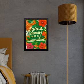 Quadro latina demais para ser minimalista 24x18cm - com vidro Cor: moldura branca Informações do produto tire todas as suas dúvidas no descritivo abaixo: decoração para quarto, sala, cozinha, escritório, área gourmet e muito mais. Chega de paredes vazias medidas - cada peça tem 24x18cm a5 . Material do papel - papel fotográfico brilhante de altíssima resolução acabamento - todos os quadros são acompanhados de vidro para proteção da imagem. - moldura em madeira maciça na cor preta ou branca conforme produto escolhido e pendurador . - os quadros são embalados de forma segura com plástico bolha com camada dupla de acordo com o tamanho dos quadros. - de 3 meses. Meu quadro chegou. Como posso fixá-lo Você precisa apenas de um martelo e um prego, pois os quadros já vão acompanhados de penduradores. Esta é a forma mais indicada. Como posso limpar meu quadro A limpeza é feita como um móvel comum da sua casa. Apenas um pano seco ou espanador são suficientes para tal Marca: Não Informado Ean: 7908991789559