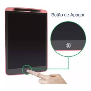 O quadro LCD é perfeito para anotar recados, lembretes, fazer diversas anotações. Tem botão de bloqueio para não apagar o que foi escrito. Funciona à bateria.