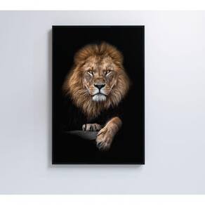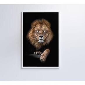 Quadro Leão Em Fundo Preto Medidas 40x60 Cm Impressão Vidro Acrílico