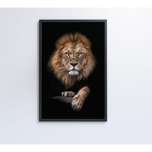 Quadro Leão Em Fundo Preto Medidas 60x90 Cm Tipo De Impressão Vidro Acrílico