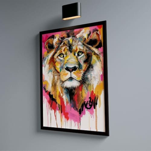 Quadro Leão Grafite Color Quadro Leão Grafite Color P (60x40) C/ Moldura Preta - - Qualidade Premium (padrão museu)