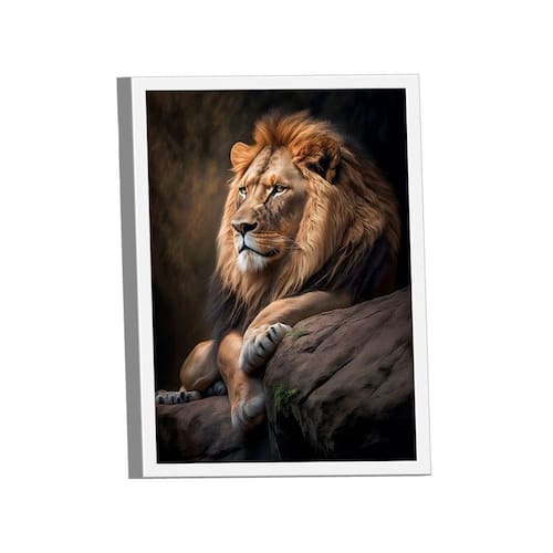 Quadro Leão Maestro -- BR ARTES Moldura Branca - Gigante 180x105 -