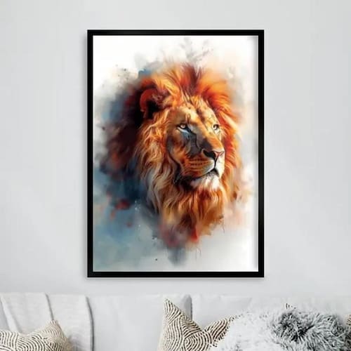Quadro leão majestoso - aquarela 45x34cm Cor: moldura preta Informações do produto tire todas as suas dúvidas no descritivo abaixo: decoração para quarto, sala, cozinha, escritório, área gourmet e muito mais. Chega de paredes vazias. Medidas - cada peça tem 45x34cm a3 . Material do papel - papel fotográfico brilhante de altíssima resolução acabamento - todos os quadros são acompanhados de uma película de acetato para proteção da imagem. - os quadros são embalados de forma segura com plástico bolha com camada dupla de acordo com o tamanho dos quadros. Garantia - garantia de 3 meses. Meu quadro chegou. Como posso fixá-lo Você precisa apenas de um martelo e um prego, pois os quadros já vão acompanhados de penduradores. Esta é a forma mais indicada. Caso prefira, você pode utilizar uma fita dupla face neste caso, sugerimos de alta qualidade para evitar que descole e seu quadro caia . Como posso limpar meu quadro A limpeza é feita como um móvel comum da sua casa. Apenas um pano seco ou espanador são suficientes para tal