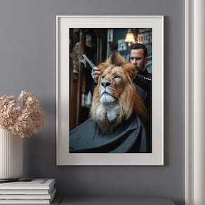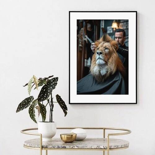 Quadro leão na barbearia - 60x48cm Cor: moldura branca Informações do produto tire todas as suas dúvidas no descritivo abaixo: decoração para quarto, sala, cozinha, escritório, área gourmet e muito mais. Chega de paredes vazias medidas - cada peça tem 60x48cm . Material do papel - papel fotográfico brilhante de altíssima resolução acabamento - todos os quadros são acompanhados de vidro para proteção da imagem. - moldura em madeira maciça na cor preta ou branca conforme produto escolhido e pendurador. - paspatur branco com 7cm de largura - os quadros são embalados de forma segura com plástico bolha com camada dupla de acordo com o tamanho dos quadros. Garantia - garantia de 3 meses. Meu quadro chegou. Como posso fixá-lo Você precisa apenas de um martelo e um prego, pois os quadros já vão acompanhados de penduradores. Esta é a forma mais indicada. Como posso limpar meu quadro A limpeza é feita como um móvel comum da sua casa. Apenas um pano seco ou espanador são suficientes para tal