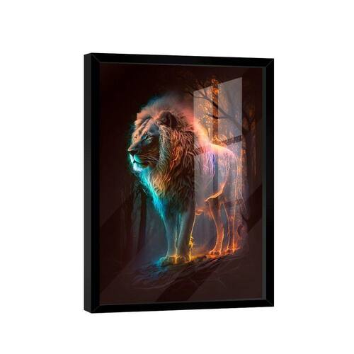 Quadro Leão Neon -- Br Artes Quadro Leão Neon -- BR ARTES Moldura Preta e Vidro - Gigante 180x105 - - Qualidade Premium (padrão museu)