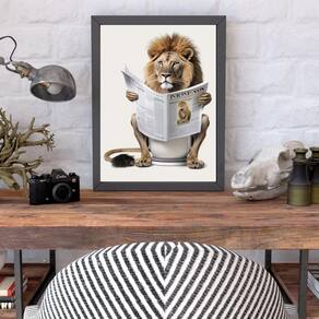 Quadro leão no banheiro lendo jornal 24x18cm Moldura: madeira branca Informações do produto tire todas as suas dúvidas no descritivo abaixo: decoração para quarto, sala, cozinha, escritório, área gourmet e muito mais. Chega de paredes vazias medidas - cada peça tem 24x18cm a5 . Material do papel - papel fotográfico brilhante de altíssima resolução acabamento - todos os quadros são acompanhados de uma película de acetato para proteção da imagem. - os quadros são embalados de forma segura com plástico bolha com camada dupla de acordo com o tamanho dos quadros. Garantia - garantia de 3 meses. Meu quadro chegou. Como posso fixá-lo Você precisa apenas de um martelo e um prego, pois os quadros já vão acompanhados de penduradores. Esta é a forma mais indicada. Caso prefira, você pode utilizar uma fita dupla face neste caso, sugerimos de alta qualidade para evitar que descole e seu quadro caia . Como posso limpar meu quadro A limpeza é feita como um móvel comum da sua casa. Apenas um pano seco ou espanador são suficientes para tal