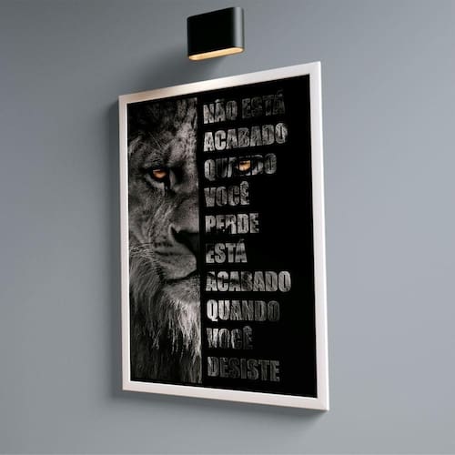 Quadro Leão Nunca Desista EGG 180x105 C/ Moldura Branca -