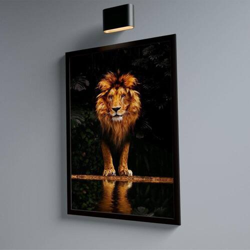 Quadro Leão Ouro Forest P (60x40) C/ Moldura Preta -