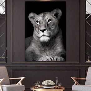 Quadro Leoa No Preto -- Br Artes