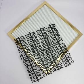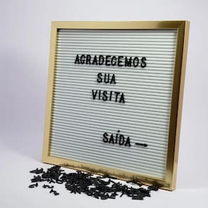 Quadro Letreiro Decorativo Dourado Letter Board 145 LetrasContém:01 Quadro Letreiro Decorativo Dourado Letter Board 145 PeçasDecoração de quarto, sala, festas de aniversário, casamento, etc. Dê um up no seu ambiente com um quadro de letras, perfeito para deixar aquele recadinho especial ou desejar um bom dia.- Tamanho: 30 x 30 cm- Acompanha: quadro letreiro com 145 caracteres de material plástico incluindo números e letras.