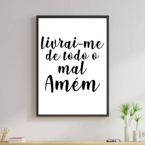 Quadro livrai-me de todo mal. Amém 33x24cm - com vidro Moldura: madeira preta Informações do produto tire todas as suas dúvidas no descritivo abaixo: decoração para quarto, sala, cozinha, escritório, área gourmet e muito mais. Chega de paredes vazias medidas - cada peça tem 33x24cm a4 . Material do papel - papel fotográfico brilhante de altíssima resolução acabamento - todos os quadros são acompanhados de vidro para proteção da imagem. - moldura em madeira maciça na cor preta e pendurador . - os quadros são embalados de forma segura com plástico bolha com camada dupla de acordo com o tamanho dos quadros. - de 3 meses. Meu quadro chegou. Como posso fixá-lo Você precisa apenas de um martelo e um prego, pois os quadros já vão acompanhados de penduradores. Esta é a forma mais indicada. Como posso limpar meu quadro A limpeza é feita como um móvel comum da sua casa. Apenas um pano seco ou espanador são suficientes para tal Marca: Não Informado