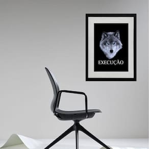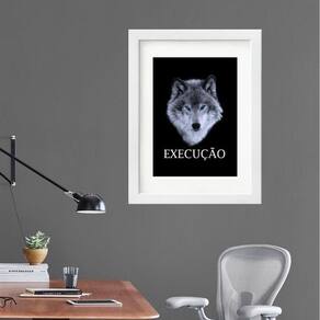 Quadro lobo execução - 60x48cm Moldura: madeira preta Informações do produto tire todas as suas dúvidas no descritivo abaixo: decoração para quarto, sala, cozinha, escritório, área gourmet e muito mais. Chega de paredes vazias medidas - cada peça tem 60x48cm . Material do papel - papel fotográfico brilhante de altíssima resolução acabamento - todos os quadros são acompanhados de vidro para proteção da imagem. - moldura em madeira maciça na cor preta ou branca conforme produto escolhido e pendurador. - paspatur branco com 7cm de largura - os quadros são embalados de forma segura com plástico bolha com camada dupla de acordo com o tamanho dos quadros. Garantia - garantia de 3 meses. Meu quadro chegou. Como posso fixá-lo Você precisa apenas de um martelo e um prego, pois os quadros já vão acompanhados de penduradores. Esta é a forma mais indicada. Como posso limpar meu quadro A limpeza é feita como um móvel comum da sua casa. Apenas um pano seco ou espanador são suficientes para tal
