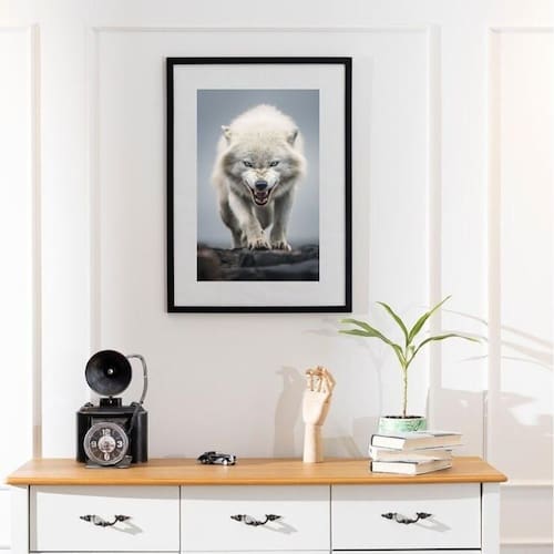 Quadro lobo feroz - 60x48cm Cor: moldura preta Informações do produto tire todas as suas dúvidas no descritivo abaixo: decoração para quarto, sala, cozinha, escritório, área gourmet e muito mais. Chega de paredes vazias medidas - cada peça tem 60x48cm . Material do papel - papel fotográfico brilhante de altíssima resolução acabamento - todos os quadros são acompanhados de vidro para proteção da imagem. - moldura em madeira maciça na cor preta ou branca conforme produto escolhido e pendurador. - paspatur branco com 7cm de largura - os quadros são embalados de forma segura com plástico bolha com camada dupla de acordo com o tamanho dos quadros. - de 3 meses. Meu quadro chegou. Como posso fixá-lo Você precisa apenas de um martelo e um prego, pois os quadros já vão acompanhados de penduradores. Esta é a forma mais indicada. Como posso limpar meu quadro A limpeza é feita como um móvel comum da sua casa. Apenas um pano seco ou espanador são suficientes para tal Marca: Não Informado