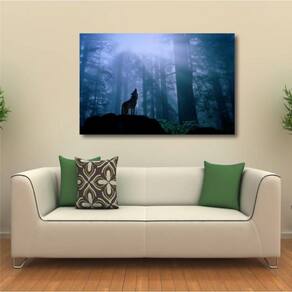 Quadro Lobo Uivando Paisagem decorativo Tela em Tecido