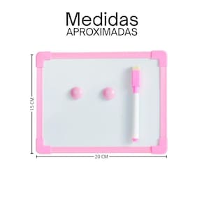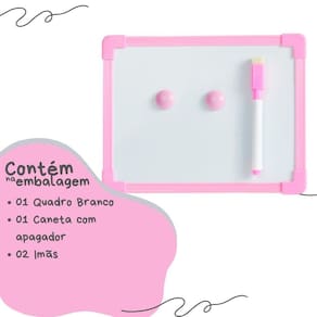 Destaques: - Superfície Magnética: Prende recados e fotos com imãs - Caneta Prática: Apagador integrado na tampa - Tamanho Compacto: Ideal para escrivaninhas e quartos infantis - Material Durável: Plástico PP resistente + base metálica