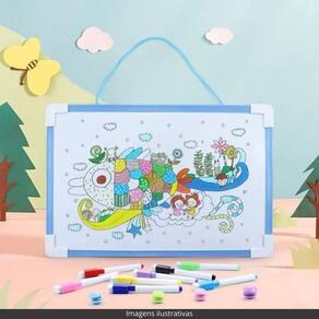 Especificações: - Dimensões: 20cm altura x 15cm largura - Idade: 3+ anos - Composição: - Quadro: PP + placa de ferro - Caneta: Tinta apagável - Imãs: Material magnético