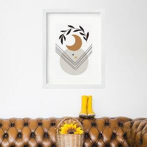 Quadro lua boho geométrico - 60x48cm Cor: moldura branca Informações do produto tire todas as suas dúvidas no descritivo abaixo: decoração para quarto, sala, cozinha, escritório, área gourmet e muito mais. Chega de paredes vazias medidas - cada peça tem 60x48cm . Material do papel - papel fotográfico brilhante de altíssima resolução acabamento - todos os quadros são acompanhados de vidro para proteção da imagem. - moldura em madeira maciça na cor preta ou branca conforme produto escolhido e pendurador. - paspatur branco com 7cm de largura - os quadros são embalados de forma segura com plástico bolha com camada dupla de acordo com o tamanho dos quadros. Garantia - garantia de 3 meses. Meu quadro chegou. Como posso fixá-lo Você precisa apenas de um martelo e um prego, pois os quadros já vão acompanhados de penduradores. Esta é a forma mais indicada. Como posso limpar meu quadro A limpeza é feita como um móvel comum da sua casa. Apenas um pano seco ou espanador são suficientes para tal