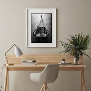 Quadro luva de boxe preta - 60x48cm Moldura: madeira preta Informações do produto tire todas as suas dúvidas no descritivo abaixo: decoração para quarto, sala, cozinha, escritório, área gourmet e muito mais. Chega de paredes vazias medidas - cada peça tem 60x48cm . Material do papel - papel fotográfico brilhante de altíssima resolução acabamento - todos os quadros são acompanhados de vidro para proteção da imagem. - moldura em madeira maciça na cor preta ou branca conforme produto escolhido e pendurador. - paspatur branco com 7cm de largura - os quadros são embalados de forma segura com plástico bolha com camada dupla de acordo com o tamanho dos quadros. Garantia - garantia de 3 meses. Meu quadro chegou. Como posso fixá-lo Você precisa apenas de um martelo e um prego, pois os quadros já vão acompanhados de penduradores. Esta é a forma mais indicada. Como posso limpar meu quadro A limpeza é feita como um móvel comum da sua casa. Apenas um pano seco ou espanador são suficientes para tal