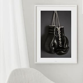 Quadro luvas de boxe preta - 60x48cm Moldura: madeira branca Informações do produto tire todas as suas dúvidas no descritivo abaixo: decoração para quarto, sala, cozinha, escritório, área gourmet e muito mais. Chega de paredes vazias medidas - cada peça tem 60x48cm . Material do papel - papel fotográfico brilhante de altíssima resolução acabamento - todos os quadros são acompanhados de vidro para proteção da imagem. - moldura em madeira maciça na cor preta ou branca conforme produto escolhido e pendurador. - paspatur branco com 7cm de largura - os quadros são embalados de forma segura com plástico bolha com camada dupla de acordo com o tamanho dos quadros. Garantia - garantia de 3 meses. Meu quadro chegou. Como posso fixá-lo Você precisa apenas de um martelo e um prego, pois os quadros já vão acompanhados de penduradores. Esta é a forma mais indicada. Como posso limpar meu quadro A limpeza é feita como um móvel comum da sua casa. Apenas um pano seco ou espanador são suficientes para tal