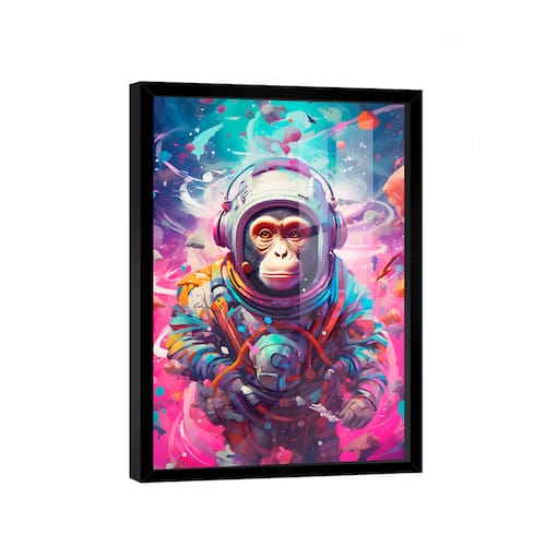 Quadro Macaco Astronauta -- BR ARTES Moldura Preta e Vidro - Médio 84x54 -