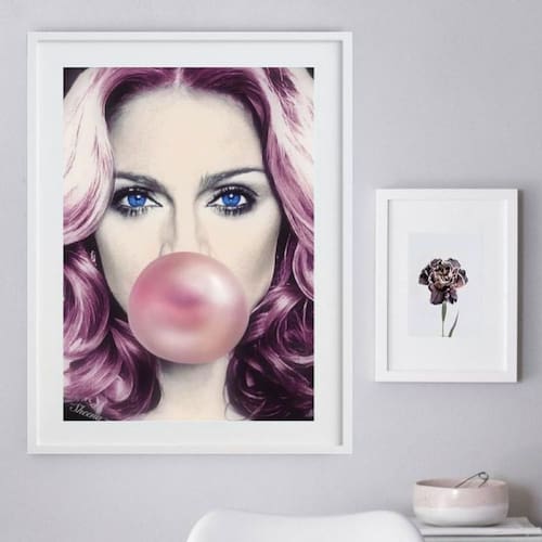 Quadro madona bubble gum 60x48cm Moldura: madeira branca Informações do produto tire todas as suas dúvidas no descritivo abaixo: decoração para quarto, sala, cozinha, escritório, área gourmet e muito mais. Chega de paredes vazias medidas - cada peça tem 60x48cm . Material do papel - papel fotográfico brilhante de altíssima resolução acabamento - todos os quadros são acompanhados de vidro para proteção da imagem. - moldura em madeira maciça na cor preta ou branca conforme produto escolhido e pendurador. - paspatur branco com 7cm de largura - os quadros são embalados de forma segura com plástico bolha com camada dupla de acordo com o tamanho dos quadros. - de 3 meses. Meu quadro chegou. Como posso fixá-lo Você precisa apenas de um martelo e um prego, pois os quadros já vão acompanhados de penduradores. Esta é a forma mais indicada. Como posso limpar meu quadro A limpeza é feita como um móvel comum da sua casa. Apenas um pano seco ou espanador são suficientes para tal Marca: Não Informado