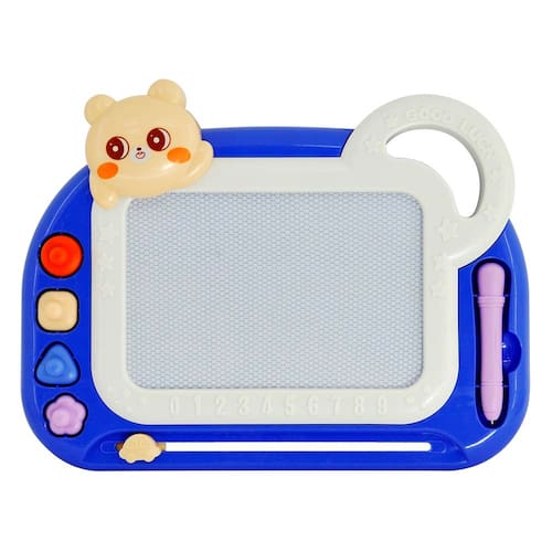 O quadro mágico magnético da DM Toys, agora com o encantador tema de ursinho, é o companheiro ideal para as primeiras criações artísticas dos pequenos, garantindo horas de diversão sem sujeira! Este quadro de grandes dimensões (aproximadamente 22,5 cm x 30cm) oferece uma vasta área de desenho para estimular a imaginação, a coordenação motora e a escrita de forma lúdica. O sistema magnético permite que as crianças desenhem com a caneta especial e apaguem tudo instantaneamente com um simples deslizar do botão, começando uma nova obra de arte em segundos. Além da caneta, o conjunto é acompanhado por 4 carimbos magnéticos com formatos variados, que enriquecem a brincadeira e ensinam sobre formas básicas. Com um design amigável e seguro, o quadro mágico é um brinquedo educativo essencial, perfeito para ser levado a qualquer lugar e manter a criatividade em alta.
