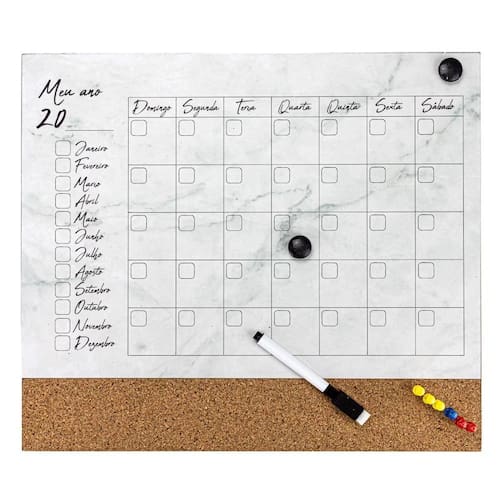 O Quadro Magnético Branco de Planejamento Mensal, da Le com Aplicação de Grade do Calendário Mensal, Acessórios Marcadores e Imãs, É Ideal Para Afixar e Escrever. de Alta Durabilidade, Além de Design Multifuncional, É Essencial Também Para Uso Pessoais e Corporativos.