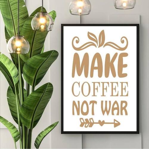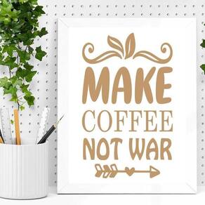 Quadro make coffee not war 24x18cm Cor: moldura preta Informações do produto tire todas as suas dúvidas no descritivo abaixo: decoração para quarto, sala, cozinha, escritório, área gourmet e muito mais. Chega de paredes vazias medidas - cada peça tem 24x18cm a5 . Material do papel - papel fotográfico brilhante de altíssima resolução acabamento - todos os quadros são acompanhados de uma película de acetato para proteção da imagem. - os quadros são embalados de forma segura com plástico bolha com camada dupla de acordo com o tamanho dos quadros. - de 3 meses. Meu quadro chegou. Como posso fixá-lo Você precisa apenas de um martelo e um prego, pois os quadros já vão acompanhados de penduradores. Esta é a forma mais indicada. Caso prefira, você pode utilizar uma fita dupla face neste caso, sugerimos de alta qualidade para evitar que descole e seu quadro caia . Como posso limpar meu quadro A limpeza é feita como um móvel comum da sua casa. Apenas um pano seco ou espanador são suficientes para tal Marca: Não Informado