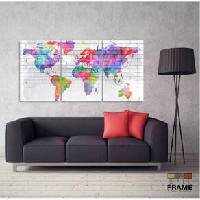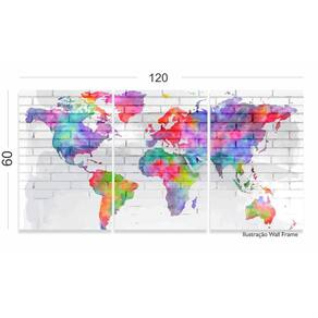 Quadro Mapa Mundi Colorido Aquarela Para Sala Quarto 125x60