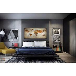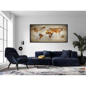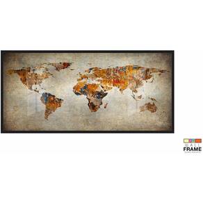 Quadro Mapa Mundi Rústico Para Sala Quarto Escritório 130x60 Moldura Preta 2x2