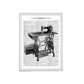 Quadro Máquina De Costura Antiga 33X24Cm - Com Vidro