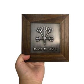 Especificações técnicas: Com fixador para paredes Material: Chapa de Aço escovado com acabamento em Verniz Eletrostático Moldura: Madeira de Reflorestamento Medidas: 14,5 cm X 14,5 cm Acabamento com fechamento e corte com maquinário profissional. Madeira Imunizada 100% livre de imperfeições, com acabamento revestido. Peso Aproximado: 110g