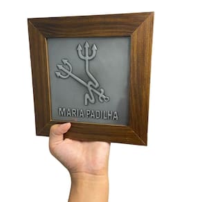O Quadro Maria Padilha Madeira Imbuia e Metal, combina a resistência do aço com a elegância da madeira de carvalho, resultando em uma peça de beleza única e profundo significado espiritual. Perfeito para adornar sua casa, escritório ou altar pessoal, este quadro não apenas adiciona um toque de estética, mas também emana uma aura de proteção e orientação. Deixe a presença intrigante de Exú iluminar seu ambiente, criando uma atmosfera de clareza e confiança em sua jornada espiritual.