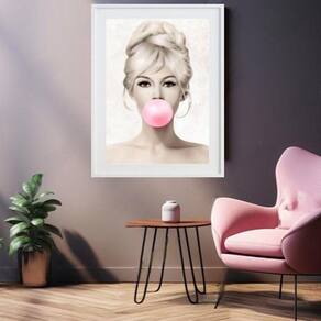 Quadro marilyn monroe pink bubble gum 60x48cm Moldura: madeira branca Informações do produto tire todas as suas dúvidas no descritivo abaixo: decoração para quarto, sala, cozinha, escritório, área gourmet e muito mais. Chega de paredes vazias medidas - cada peça tem 60x48cm . Material do papel - papel fotográfico brilhante de altíssima resolução acabamento - todos os quadros são acompanhados de vidro para proteção da imagem. - moldura em madeira maciça na cor preta ou branca conforme produto escolhido e pendurador. - paspatur branco com 7cm de largura - os quadros são embalados de forma segura com plástico bolha com camada dupla de acordo com o tamanho dos quadros. Garantia - garantia de 3 meses. Meu quadro chegou. Como posso fixá-lo Você precisa apenas de um martelo e um prego, pois os quadros já vão acompanhados de penduradores. Esta é a forma mais indicada. Como posso limpar meu quadro A limpeza é feita como um móvel comum da sua casa. Apenas um pano seco ou espanador são suficientes para tal