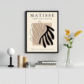 Quadro matisse the cut-outs 24x18cm Moldura: madeira preta Informações do produto tire todas as suas dúvidas no descritivo abaixo: decoração para quarto, sala, cozinha, escritório, área gourmet e muito mais. Chega de paredes vazias medidas - cada peça tem 24x18cm a5 . Material do papel - papel fotográfico brilhante de altíssima resolução acabamento - todos os quadros são acompanhados de uma película de acetato para proteção da imagem. - os quadros são embalados de forma segura com plástico bolha com camada dupla de acordo com o tamanho dos quadros. Garantia - garantia de 3 meses. Meu quadro chegou. Como posso fixá-lo Você precisa apenas de um martelo e um prego, pois os quadros já vão acompanhados de penduradores. Esta é a forma mais indicada. Caso prefira, você pode utilizar uma fita dupla face neste caso, sugerimos de alta qualidade para evitar que descole e seu quadro caia . Como posso limpar meu quadro A limpeza é feita como um móvel comum da sua casa. Apenas um pano seco ou espanador são suficientes para tal